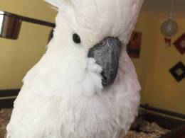 Large beautiful cockatoo parrot. Loves being around people both male and female. Used to kids and dogs. Loves his cuddles and kisses. Great talker love whisleing with you and dancing. Only messenger please. Cage plus accessories...tatianamorgan16@gmail.com