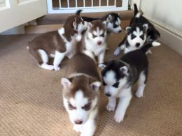 Happy to announce our litter of 7siberian husky pups 4 girls 3 boys all blue eyed. All pups in good health reared around other animals and children. Wormed and flead before re-homing chipped and full pedigree documents Our Puppies will be :....tatianamorgan16@gmail.com
