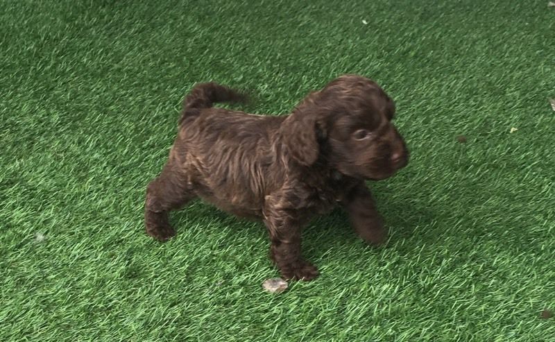 Out beautiful pedigree cocker spaniel has had 7 gorgeous pups. 4 girls and 3 boys. The boys brawn and the girls are black. The father is a Patterdale.The mother has a lovely temperament. Very playful and gentle.The puppies are are very playful. There at ease around children and other dogs.they have been wormed and flead. They are ready to leave on the 15 th of August. Mum and dad can be seen.
