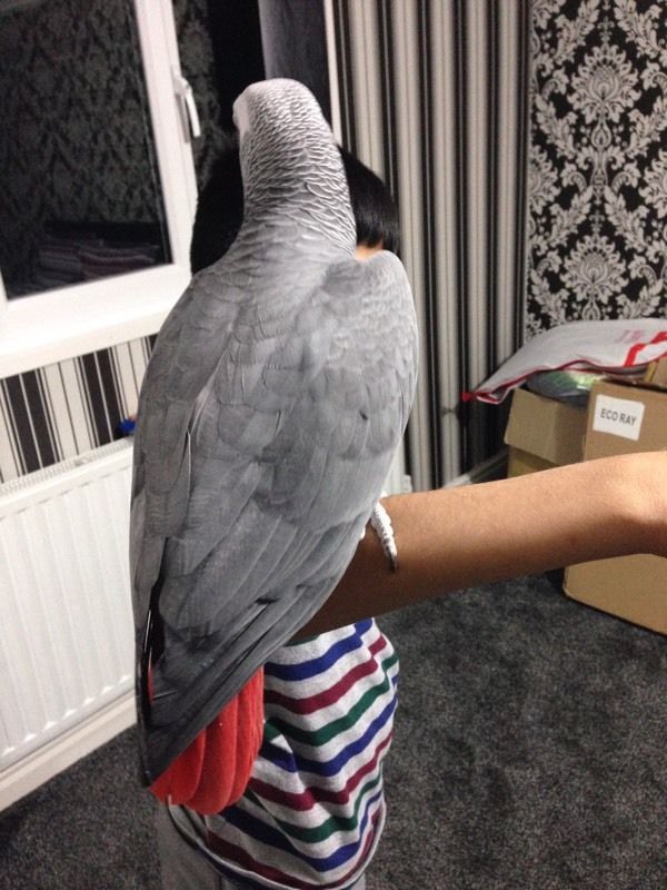 Hi I am selling my 2 and a half years old uk hand reared African grey comes with cage which is in good condition toys and food fairly tame just need to get used to u no DNA paper perfect feathers no plucking good health 650 with cage for more info please contact thank u