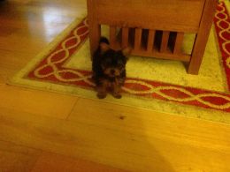 here I have a Yorkshire terrier boy puppy looking for he's new home can be seen with mum