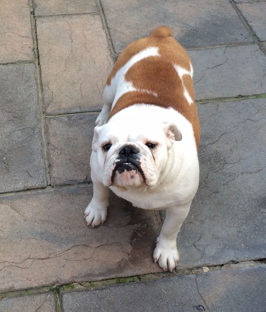 One year old British Bulldog bitch for sale.