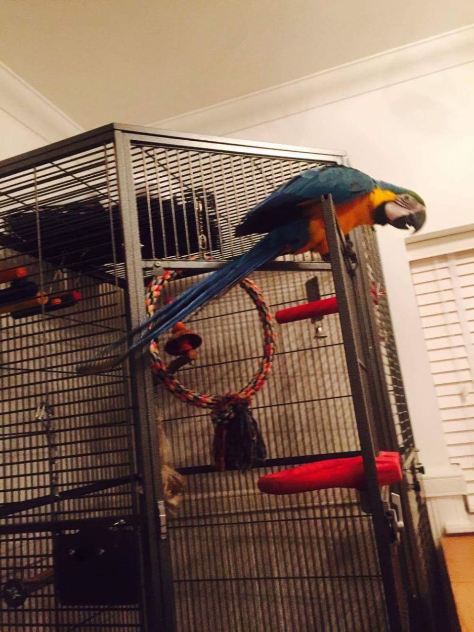 Blue and gold macaw for sale sadly selling due to being allergic had him for 2 months comes with a £375 cage. Lovely tame macaw loves people and pets. Amazing bird so upset it's going.PRICE IS BAGAINING.