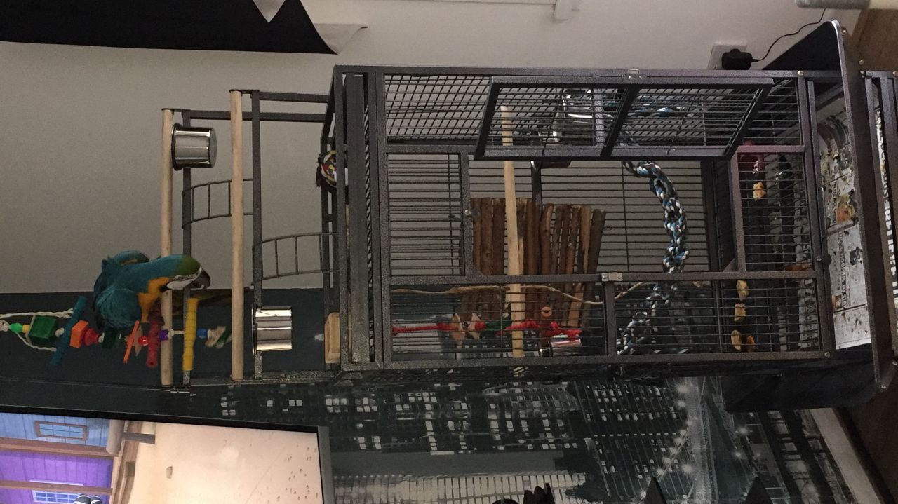 Reluctant but necessary sale due to change in circumstances. Charlie is 12 months old and talking. He is hand tame and is used to children and pets. Charlie will come with cage pictured and everything he needs, cage was only purchased for him 3 weeks ago so is clean and in very good condition.