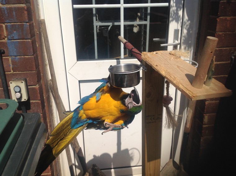 Lovely blue and yellow macaw parrot for sale.. she's 18 months old...very talkative and tame... she's brilliant with children and new people.. all round very happy parrot..shes great with other animals e.g. Dogs.. she comes with a fully equipt cage and play stand.contact frankgreg083@gmail.com