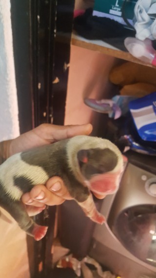 We had a litter of 8 puppies 3 female 5 males. (1 boy 1 girl sold.) Mom is an alpha blue blood bulldog dad is a Scott American bulldog (Both can be seen). We have red lilac blue black blue merle puppies all big and belly bought up around my small children so will make great family dogs. Male puppies will be $1300 female $1500. With a £100 deposit ( non refundable) which is to secure the puppy of your choice.