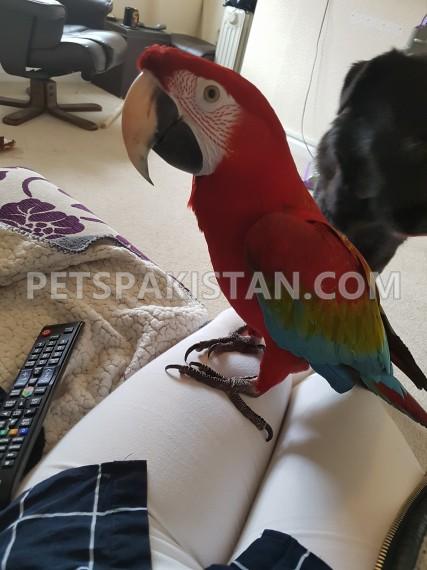 Very very hard decision, but my husband and I are looking at selling our beautiful parrot. Billy the macaw is 1/2 years old. He loves attention, and gets on well with dogs/children. hand ta