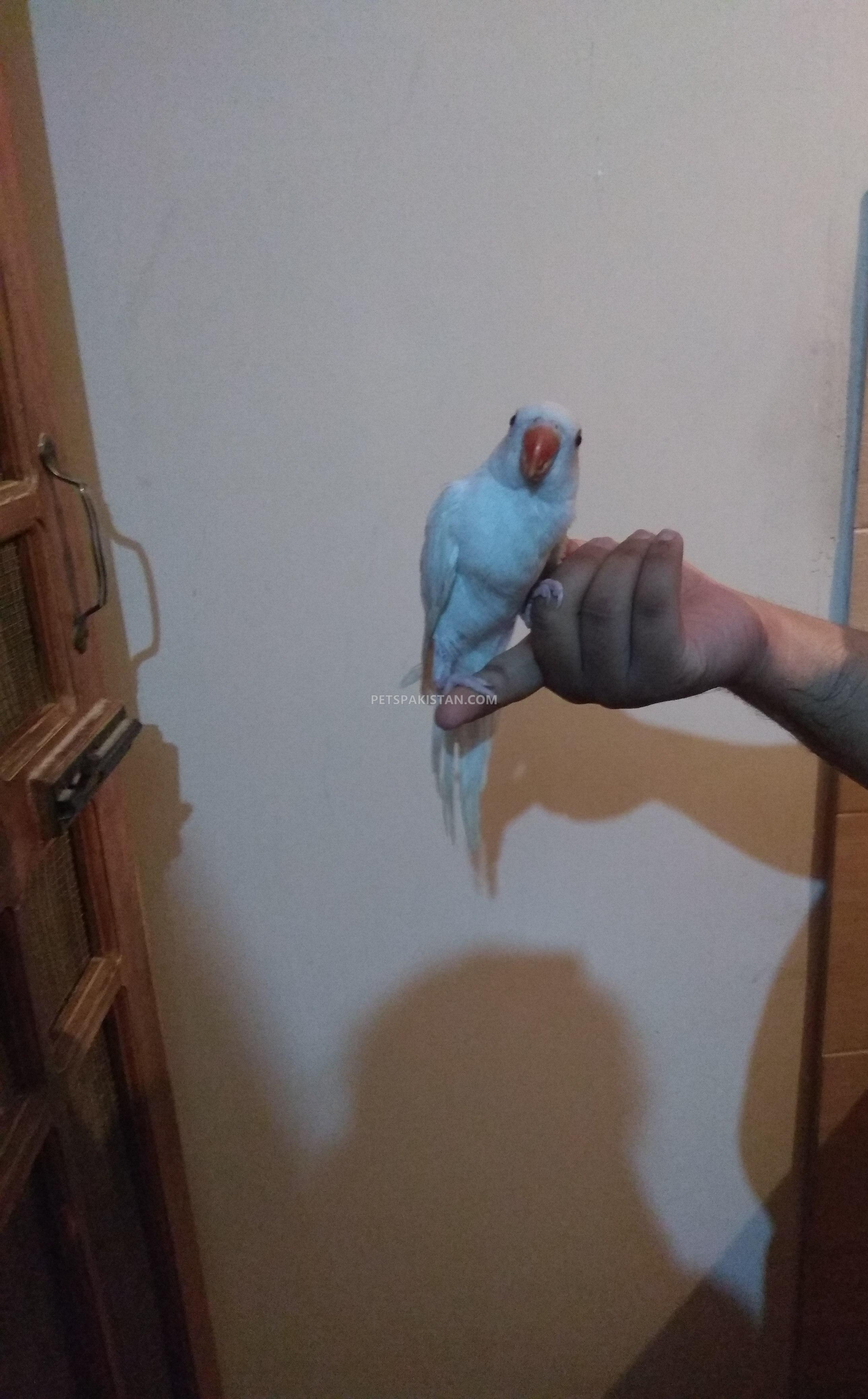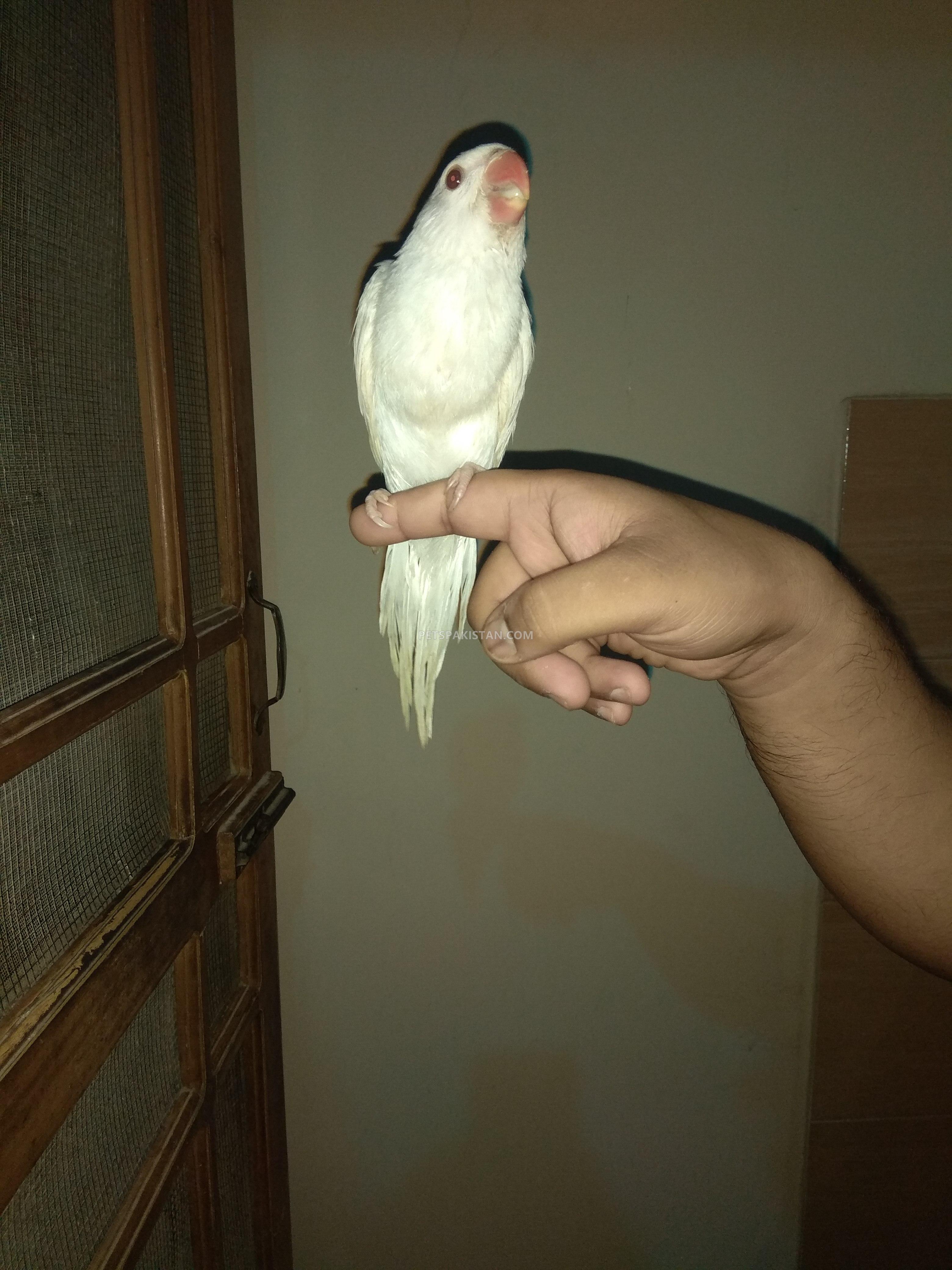 White ringneck healthy & Very active chick with red eyes.. Age almost 2 months.. NO BARGAINING AT ALL PLEASE. If you agree, you may contact on call/sms 03442360070
