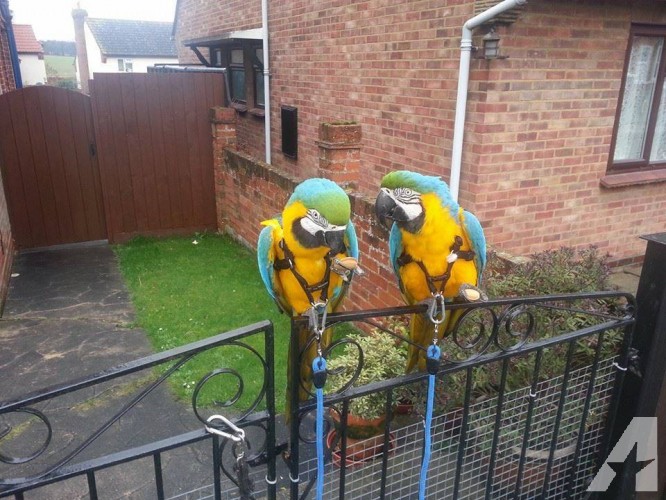 Beautiful Blue & Gold Macaws currently hand feeding pairs available. These guys are super sweet and love to cuddle. Raised around children & dogs. They come with a health guarantee as well. Shipping if needed for we ship with all valid papers. They will also be sexed. They come with their health guarantee and DNA papers upon request. Contact us now to make your offer for the limited pairs. Email at calixtocatherine1667@gmail.com