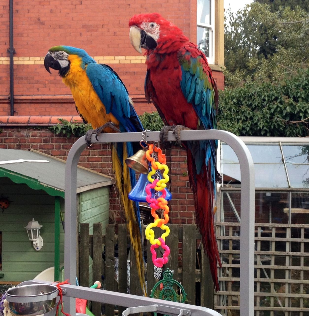 Mimi is approximately 12 months old Macaw parrot. She is a little shy around other birds, but well socialized and friendly. She would make a great pet. Her beak is curved but she does just fine with it.