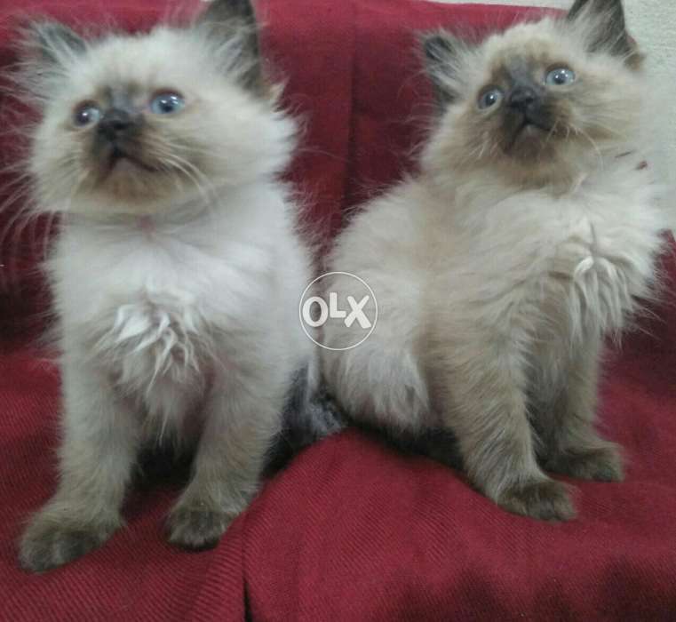 Chocolate point Himalayan kittens for sale.I own the parents also.They are half sided pedigreed. Kittens have a strong bone structure, they both have a long triple coated fur and are semi punched.Kittens are healthy and both have blue eyes and will change there eye shades after regular interval of time. Male and female kittens available. Grand father of the kittens is a national show winner of GERMANY 2015. 3 of my kittens are gone to there new homes only last pair is left thats why selling them at a cheap price. Feel free to contact. For more pictures and videos contact on the given number. They are only 55 days old. They are dewormed with a pet passport. Plus they are not siamese they are pure Himalayans from strong line you can get them checked by any vet in the city.