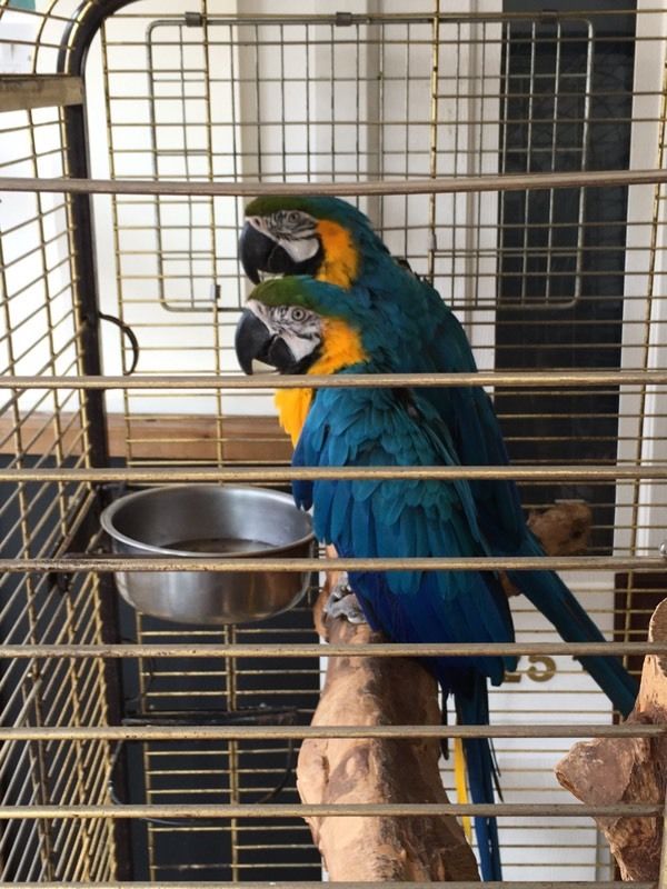 2 parrots they are love birds and have always been together so not willing to sell separately