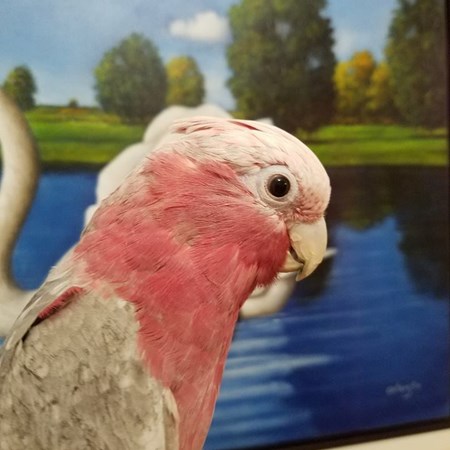 This beautiful Rose breasted cockatoo baby is available. This baby is so sweet. Loves being hugged and held. The baby loves it's bright colorful wood toys. Please message me if interested. Shipping is available thru united. Northeast PA 18301. We can ship