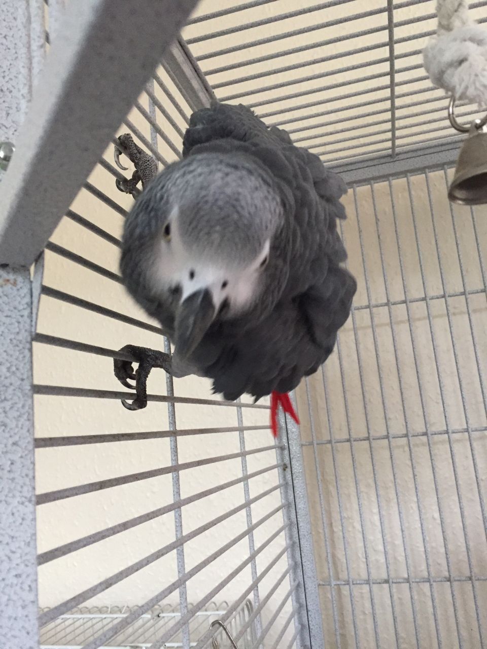 Bonnie is looking for a new home, she is a 4ish year old female. she hasn't been sexed, we have just been told she's a little lady. She needs a home that knows how to handle greys, and I'm going to be honest she doesn't like woman, she will tolerate me feeding her, cleaning cage etc but I can't get near her. She was brought for my partner but he just hasn't got the time as he works full time, she is very affectionate towards men, as in she will kiss your mouth, nibble ears she will literally take the food from your mouth, she talks very well, she talks like a male but sings like a woman, she is a very clear talker, and also wistles a lot, she also does the X factor song lol. She's a lovely bird that just needs more than I can give her( her choice) If she liked me she'd be staying but unfortunately I'm not a man, also she answers the phone when she hears it ring. Any question please call.also she comes with the massive cage so she has enough room x