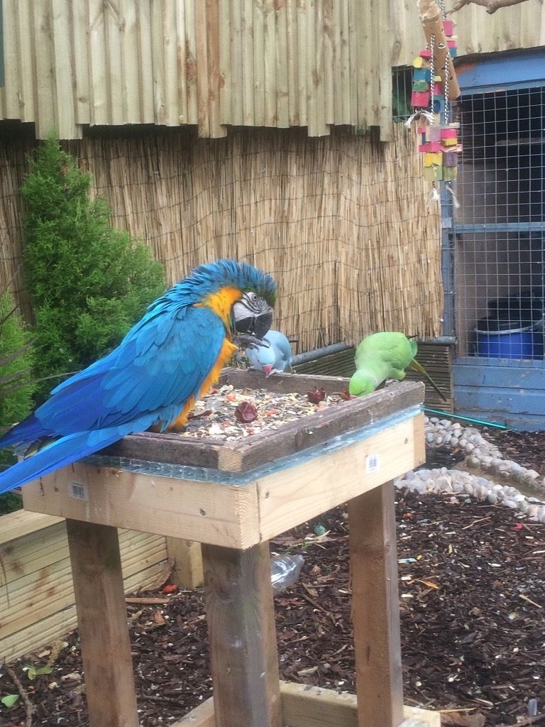 Blue and gold macaw for sale very good bird frindley with other birds as seen in pictures and frindley with people once it knows you. Sex is unknown. Just turned 2 years on 2 November. This is a very reluctant sale so will not sell to just anyone, reason for sale is because of neighbours complaing about noise as these are naturally very noisy birds. It does not come with a cage as iv never had one for i
