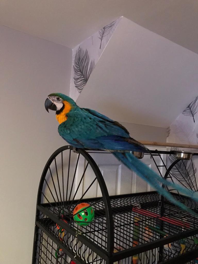 Beautiful baby 5 month old Blue and Gold Macaw.