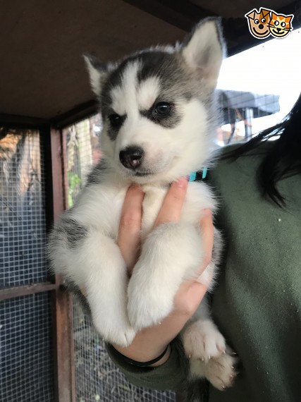 READY NOW last 2 girls from a litter of 6 these pups have been born and raised in a busy family home they will be very well socialised with children other dogs horses etc lovely personalities chunky little pups they have been wormed every 2 weeks from 2 weeks old also flea treated . they are pedigree huskys both parents are KC registered but pups will not be (family homes only )pups can be viewed with mum but dad is a stud dog