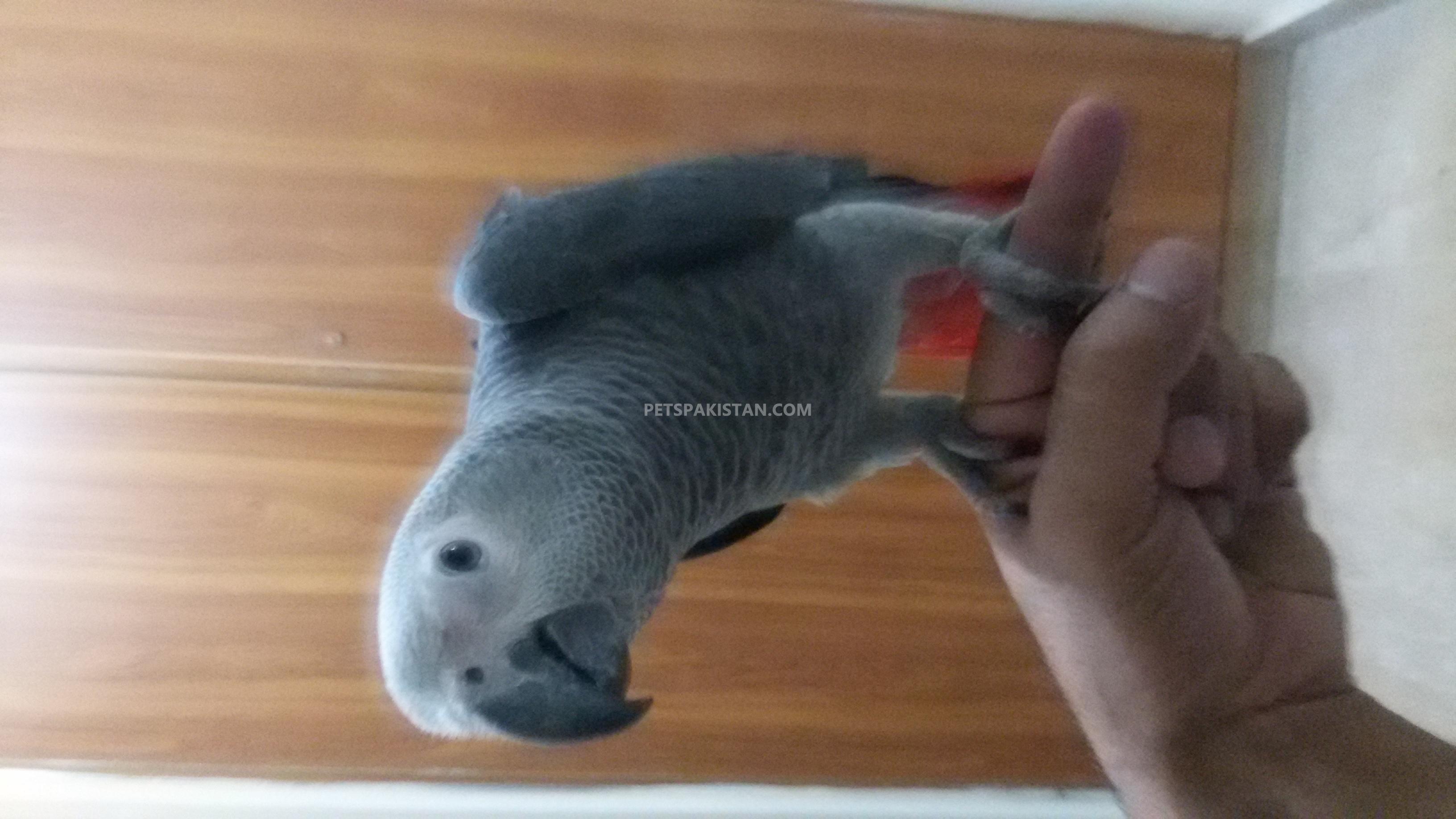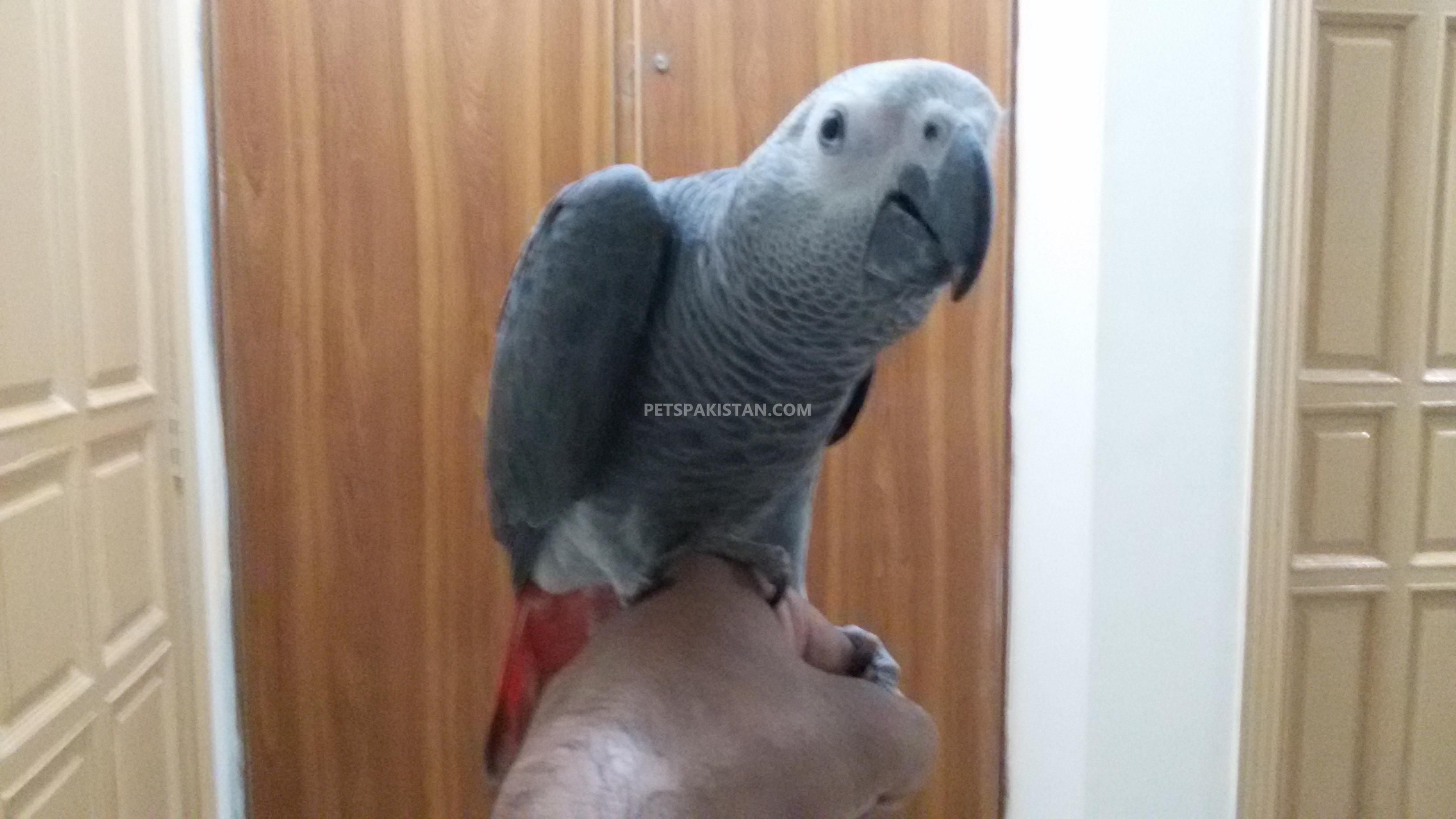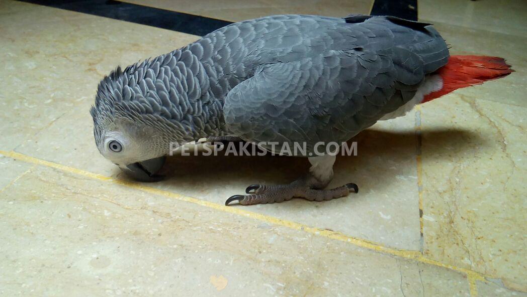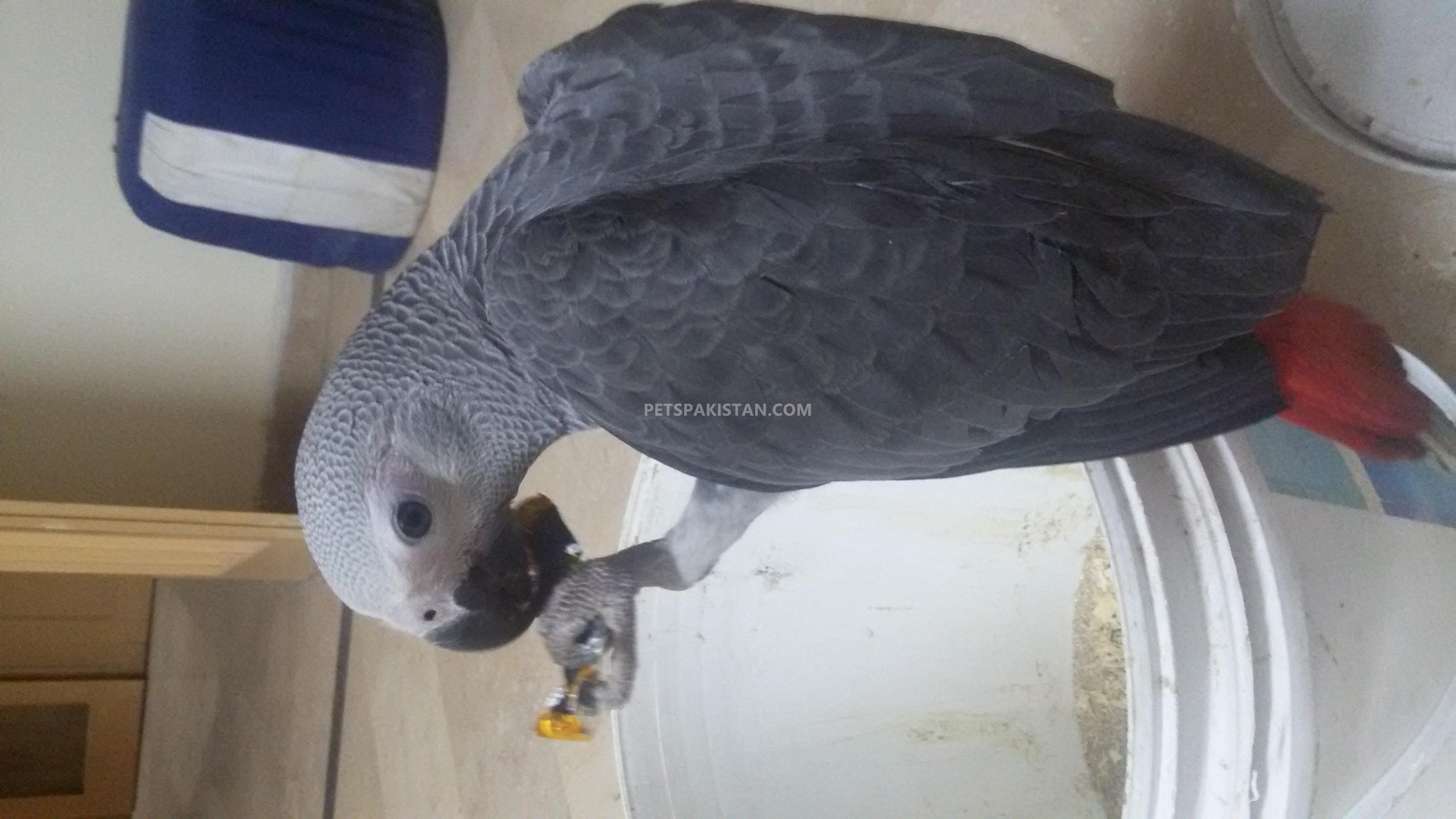 Very Talkative African Grey Parrot for Sale in Bahria Town Lahore. Age is almost 1 year, whistles a lot and says words like "Main hon Don" "Assalaamoalikum" "Kahan se arahay ho" "Mithoo" "Cuckoo" . Not well hand tamed but very adaptive and loving. Eats paratha and fruit mostly.